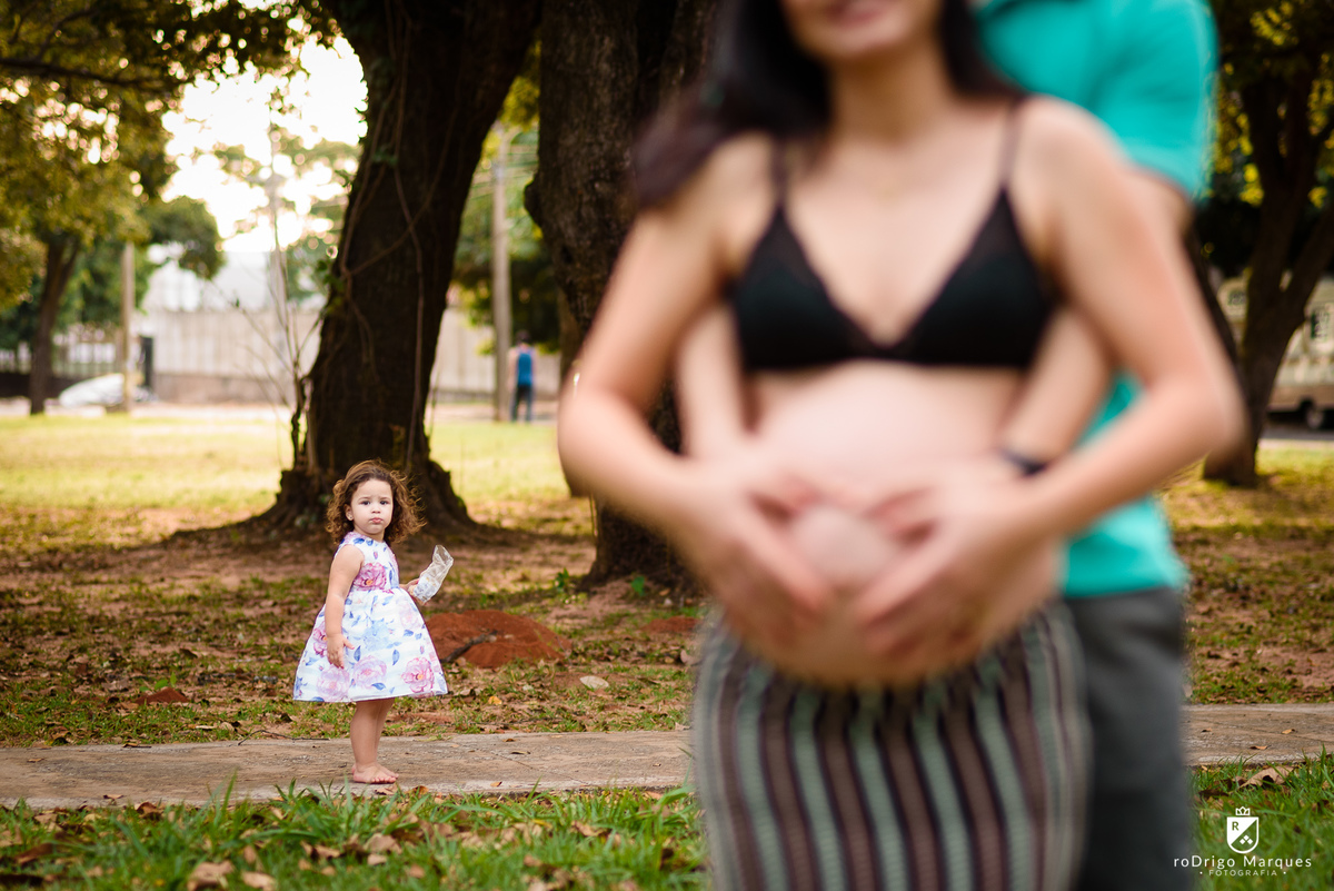 A família aguarda ansiosa a chegada da princesa Clara. Fizemos esse ensaio em um domingo de sol, em uma praça muito bonita e bem arborizada e com uma entrada de luz natural muito bonita.